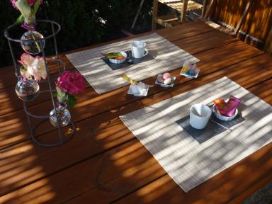 They are hearty, fresh bread and pastries, organic jams and marmalades, fruit juice... Dinners, only on RESERVATION 2 forms, ** express formula, (salad and quiche of the day for example, dessert, coffee) ** a formula full (input, dish, cheese, dessert, coffee, wine included) meals are prepared with care by Katy, with local products as a priority, the garden vegetables as much as possible.